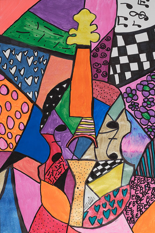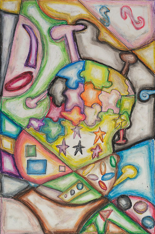 Oil pastel, colored pencil, sharpie and marker