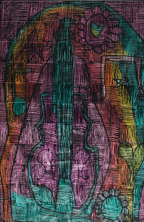 Colored pencil and ink