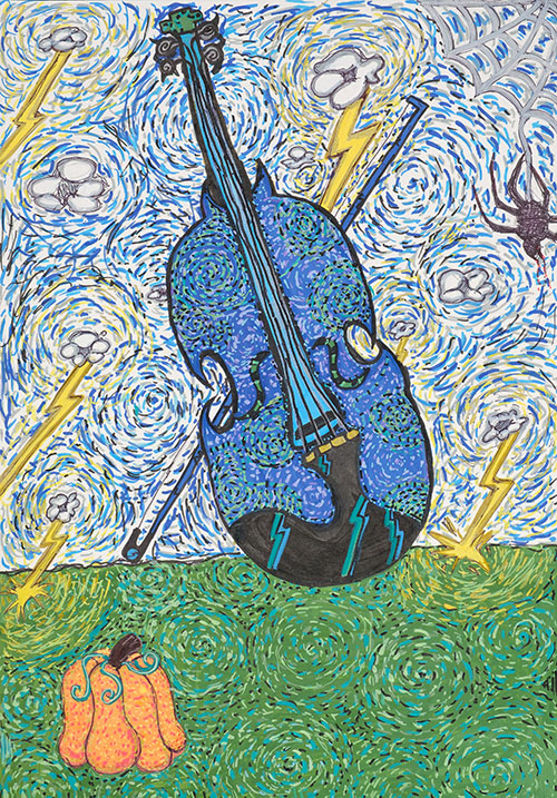 Watercolor, marker, and sharpie