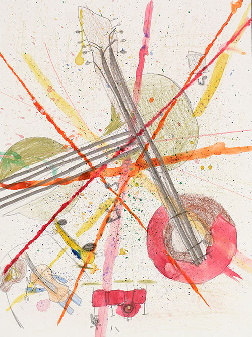Watercolor, colored pencil, and marker